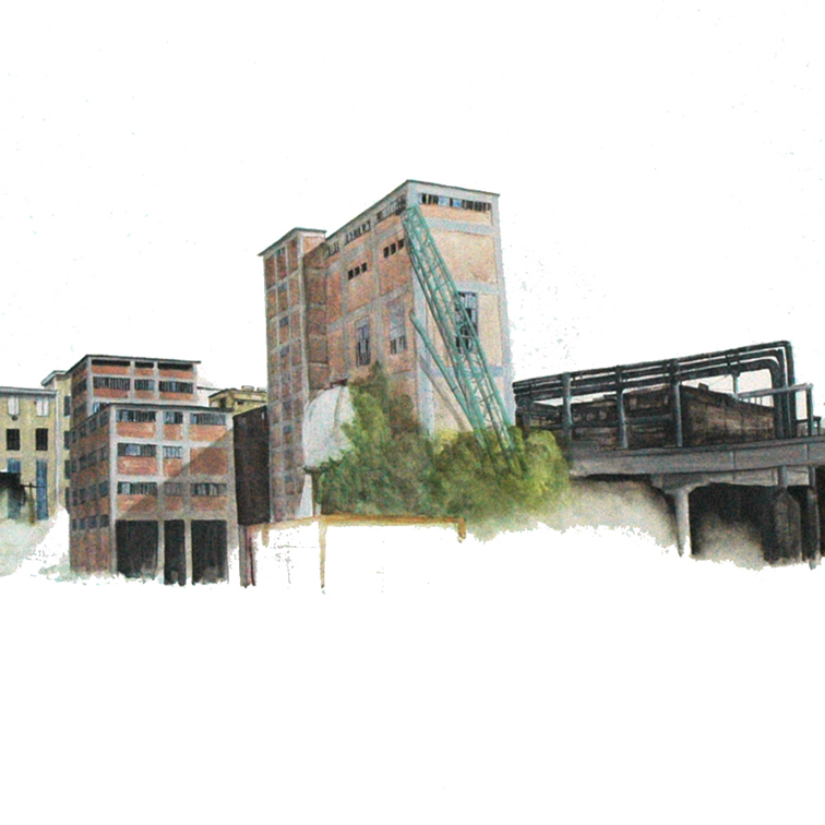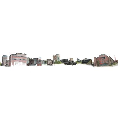 Phrix-Fabrik, Okriftel, 2009, Acryl auf Leinwand, 460 cm x 120 cm